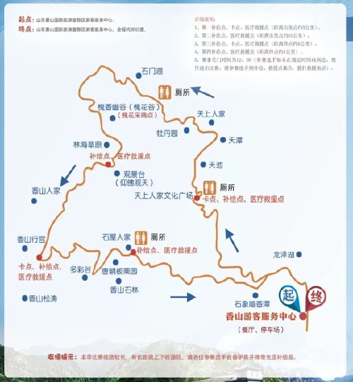 比赛中,选手们将穿越山东香山国际旅游度假区,沿途欣赏天池、天潭、牡丹园、槐花谷、林海草原等多个标志性地点。沿途美景将伴随着他们的奔跑,为比赛增添别样的乐趣。为了保障参赛选手的安全,组委会还特别制定了严格的医疗保障和应急救援预案,确保选手们在比赛过程中能够得到及时的医疗救助和安全保障。