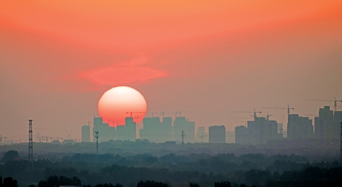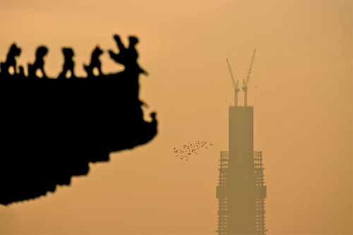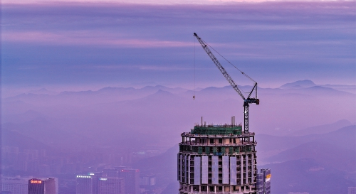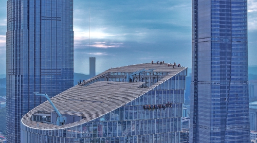 在建的最高建筑和远山相映成趣。(张沂 摄)