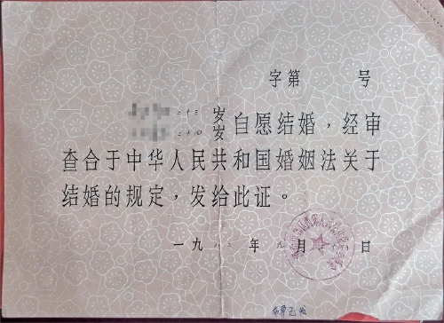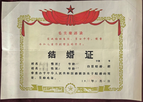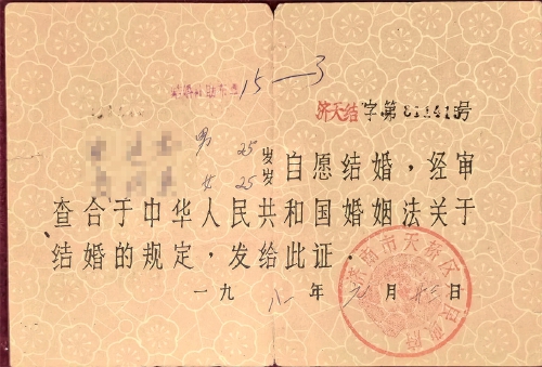 1982年,济南市郊区市民结婚证。