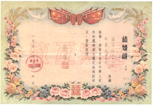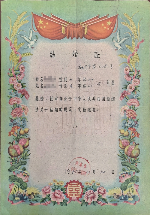 1956年,济南市槐荫区市民结婚证。