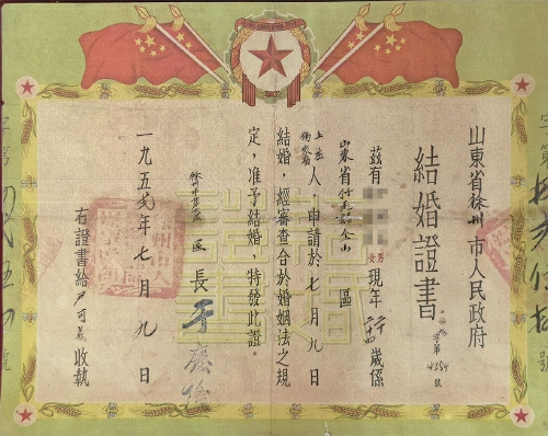 在此之前,各省市可根据地区实际情况来制定婚姻登记办法,因此婚书上的文字、图案百花齐放,其背后也是婚姻观念、文化、制度的演变。今天,我们就结合我省各时期的结婚证,来追溯山东历史上