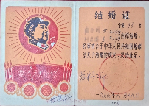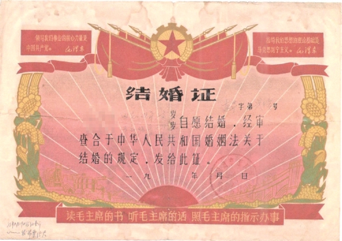 1969年,济南市红旗区市民结婚证。