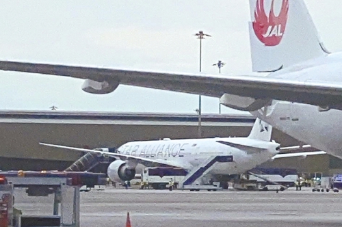 这是5月21日拍摄的备降在泰国曼谷素万那普机场的新加坡航空公司客机。新加坡航空公司一架客机21日在飞行过程中遭遇严重气流颠簸,随后紧急降落在泰国曼谷机场。目前确认机上1人死亡,死者为一名73岁的英国籍公民,初步了解其有心脏病。另有数十人受伤,其中7人重伤。 (新华社发)