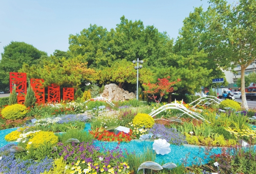 此外,在阳光新路与建宁路路口,利用道路中央绿化带端头绿地打造的“流芳屿”园林景观节点也已完工。这里以彩叶小乔木、花灌木等和景石组合搭建,以鼠尾草、荆芥、丰花月季为主要材料,构成线条流畅的种植组团,形成一条芳香流淌的“河流”与岛屿,整体景观颇具动感,营造出灵动跳跃的街头花卉景观。(本报记者 崔健 摄)