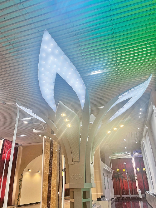 松果、花千骨、三叶草……在产品展示厅,每款造型各异的路灯都有自己的专属名字,被赋予了不同的文化属性。“这款就是大明湖边的路灯。”高德昌介绍,灯柱带有“泉”字标,灯罩里融入了柳叶、荷花等济南元素,灯的整体设计古色古香、简洁大方,“光源还可以变色,与灯光秀相呼应,这款路灯已经用了5年以上,依然清晰明亮。”