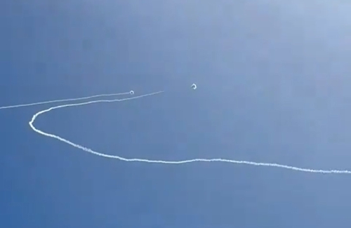 这张以色列媒体发布的视频截图显示,5月26日,以色列“铁穹”防空系统在特拉维夫上空拦截火箭弹。 (新华社发)
