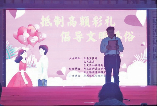 近日,历城区委宣传部、区民政局、区文化和旅游局主办的“抵制高额彩礼 倡导文明婚俗”宣传引导进乡村活动在荷花路街道朱家庄村举行。该活动通过喜闻乐见的文艺形式展现了对以往婚礼旧俗的摒弃和对现代婚嫁观念、文明新风的倡导。