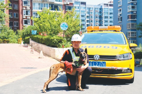 “人+车+犬”联动让燃气安全隐患排查更高效。(鲁婧 摄)