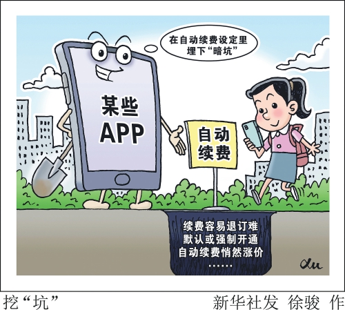 “新华视点”记者调查发现,近年来,手机APP自动续费套路越发多样,尽管相关部门三令五申,部分APP经营者仍在自动续费设定里埋下“暗坑”。