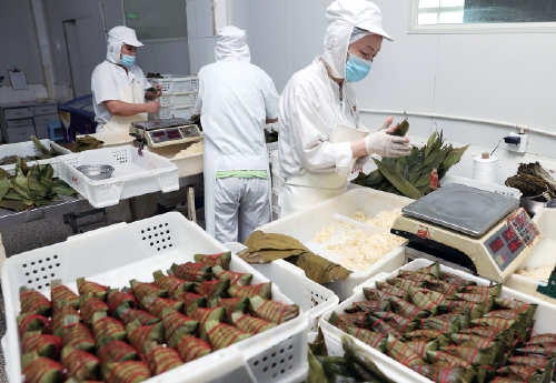 济南市益康食品厂有限公司自2016年与“济南舰”结为双拥共建单位以来,每逢端午节、中秋节、春节等节日,都会送去应节食品慰问最可爱的人,让子弟兵感受到来自第二故乡的思念之情。据悉,益康生产的九子荷香粽,采用熟米加工工艺制作,九种口味,九重寓意,并研发了具有浓郁济南本土特色的荷香龙山小米粽和泉城把子肉粽。还有荷香桂花莲藕粽、荷香冰糖雪梨粽、红提葡萄粽、润香豆沙粽、金丝小枣粽、青稞芋泥粽、甑糕红枣粽、蛋黄粽等20多个品种,给消费者带来新奇体验和味蕾满足。(本报记者 吕传泉 摄)