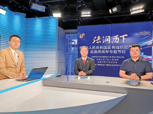 历下区法院受邀到电视台录制节目,结合实际案例讲解反有组织犯罪法法律知识。今年是反有组织犯罪法颁布实施两