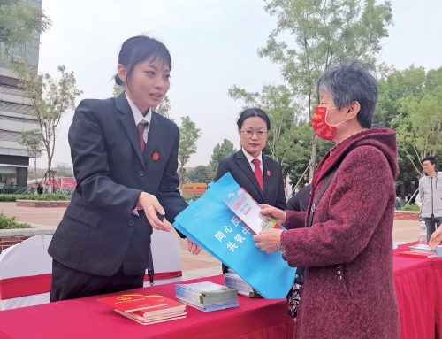 高新区法院进社区,开展以“守护社会安宁,共建法治高新”为主题的普法宣传活动。