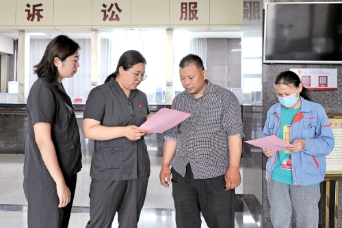 章丘区法院在法院立案大厅向来院群众解读反有组织犯罪法主要内容。