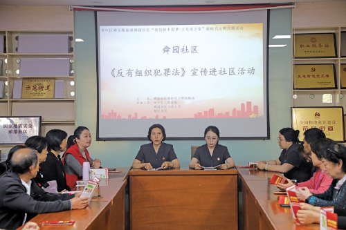 市中区法院走进舜园社区开展反有组织犯罪法普法宣传。