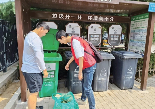 活动中,大学生志愿者们深入住宅小区、生活广场,通过“桶前值守”,耐心细致地向居民讲解垃圾分类知识,积极协助居民进行垃圾分类投放,将错误分类的垃圾重新整理,并清理垃圾桶及周边杂物。在大学生志愿者的帮助下,现场居民的垃圾分类投放逐步规范有序起来,大家普遍表示学到了很多分类常识,很有意义。