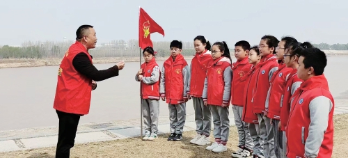 作为槐荫区美里湖街道新时代文明实践中心的一员,王志军经常跟队友们一起组织公益课堂,带着孩子们来到黄河岸边开展“大手牵小手,共护母亲河”志愿服务活动。周末,大小志愿者手持垃圾钳、垃圾袋,发扬不怕脏、不怕累的精神,沿着黄河岸边捡拾垃圾,维护河岸环境;小志愿者们带着宣传保护母亲河的倡议书和课堂中学到的知识,向周边游客普及节约用水、保护黄河法