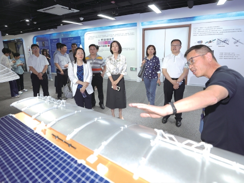 专家学者在中科卫星(山东)科技集团有限公司进行调研。