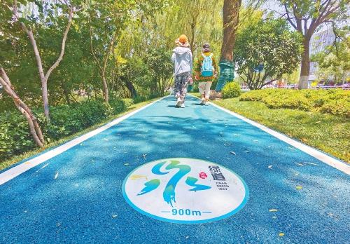 6月3日,在趵突泉北路大明湖西南门至五龙潭公园段,道路西侧的围挡已经拆除,邻近护城河畔新修建的千米绿道已经对市民开放。记者在现场看到,绿道周边植被茂密,绿道上喷绘了“泉·济南绿道”的标识,绿道旁还设置了供市民休憩的座椅,在护城河畔还修建了多处滨水平台和一处“太平泉”,市民可在泉水畔休憩纳凉。据了解,此处绿道建设是“一湖一环”绿道连通项目的一部分,整体工程将于10月1日前全部完成。其中,“一湖”为大明湖南岸5个透湖点的设置,目前该示范路段改造已经竣工;“一环”即总长6.6公里的护城河沿线围合道路的改造提升,主要施工内容是针对现状情况,进行绿化梳理及提升、环河步道贯通、增设配套设施、功能及景观提升等。(本报记者 崔健 摄)