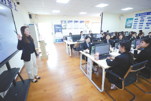 随着大数据、云计算等技术的发展,及时调整增加大数据财税系统的操作、财务数据分析等教学内容,通过智能财税系统综合学习,学会全税种的一键申报,最后利用大数据对企业的财务指标进行检测,保证数据的正确性和合规性。学生在校期间可为500余家小微企业提供工商注册、代理记账等精准会计服务。 (本报记者 赵晓明 摄)