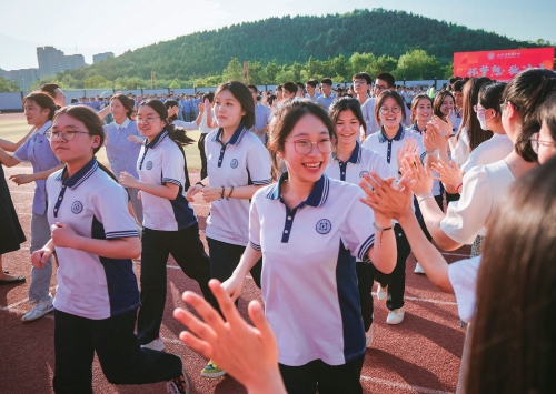 初三、高三各班同学依次穿过“梦想门”,守护的老师们为同学们加油助威,送上诚挚的祝福与殷殷嘱托。耕耘于四季,收获于仲夏。十年磨一剑,今朝试锋芒。祝愿初三、高三毕业班同学迎风远行、劈波斩浪、金榜题名! (黄中明 摄)
