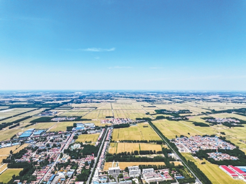 芒种时节,济南黄河两岸的麦田呈现一幅丰收的盛景,麦穗颗粒饱满,麦香四溢,预示着一个丰收的好年景来临。一片片金黄色的麦田在微风中摇曳,如同金色的海洋,麦浪滚滚,美不胜收。黄河南岸的城市建筑在麦浪中若隐若现,与金色的麦田相映成趣,构成了一幅和谐美丽的画面。在这样一个充满希望的季节里,黄河两岸的麦田成为夏季最美的风景。 (王章华 摄)