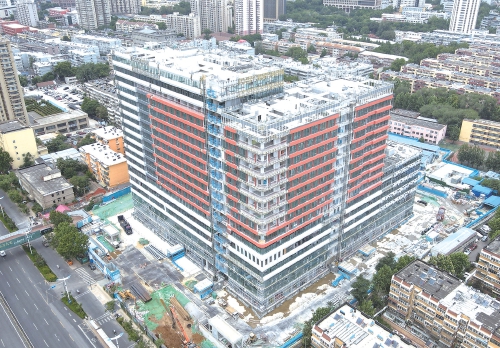 6月4日,在山东第一医科大学附属济南妇幼保健院(济南市妇幼保健院)新院区项目建设现场,医院外部施工已基本完成,目前正在进行室内外装修和机电安装施工,其中精装工程已完成45%,幕墙完成88%,机电安装施工完成85%。