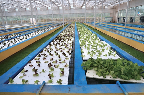 养鱼不换水,鱼能健康生长;种菜不施肥,菜可茁壮成长。近日,记者来到位于长清区双泉镇的山水人家田园综合体项目“鱼菜共生智能温室大棚”内看到,养鱼池里,鱼儿活蹦乱跳,激起阵阵水花;生长板上,蔬菜碧绿青翠,一片勃勃生机。