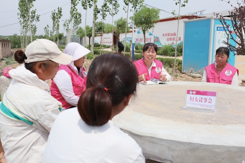 凌庄村有个老磨盘,在村里放了好多年。现在,老磨盘成了“妇女议事会”的集合点,大家拿着一个本子、一个马扎围坐在一起,丝毫不在意脸颊被头顶的烈日晒得通红。“村里打算在这里修个凉亭,有机会就把村民聚集起来说说话,让我们更了解大家的想法!”靳利红说。