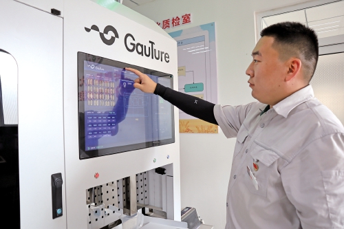 工作人员操作AI检测设备。