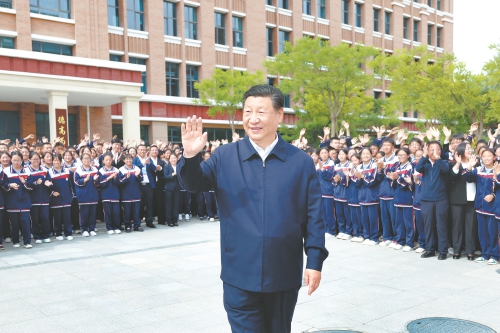 6月18日至19日,中共中央总书记、国家主席、中央军委主席习近平在青海考察。这是18日下午,习近平在果洛西宁民族中学考察时,向师生们挥手致意。 (新华社记者 鞠鹏 摄)