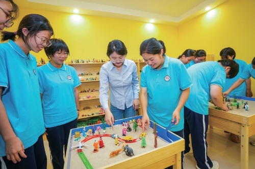 除了硬件保障,该校还建立了完备的心理健康教育机制。专职心理教师任红霞介绍,从新生进校起,学校就为学生建立心理健康档案;并配备有专业心理教师,建立一支专职和兼职相结合的心理辅导骨干教师队伍;每学期8节心理教育课,心理教师把基本的心理知识和有效的心理调节方法传授给每名学生,帮助学生学会自我调节,保持健康阳光的心理状态。在心理健康月、每次大考前后等重要节点,心理教师还会开展健康讲座、拓展活动等,让学生释放压力。开设国际理解教育特色课程班