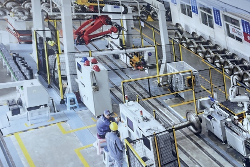 中车山东机车车辆有限公司数字化轮轴组装生产线有序运行。项目是加快形成新质生产力、增强发展后劲的有力支