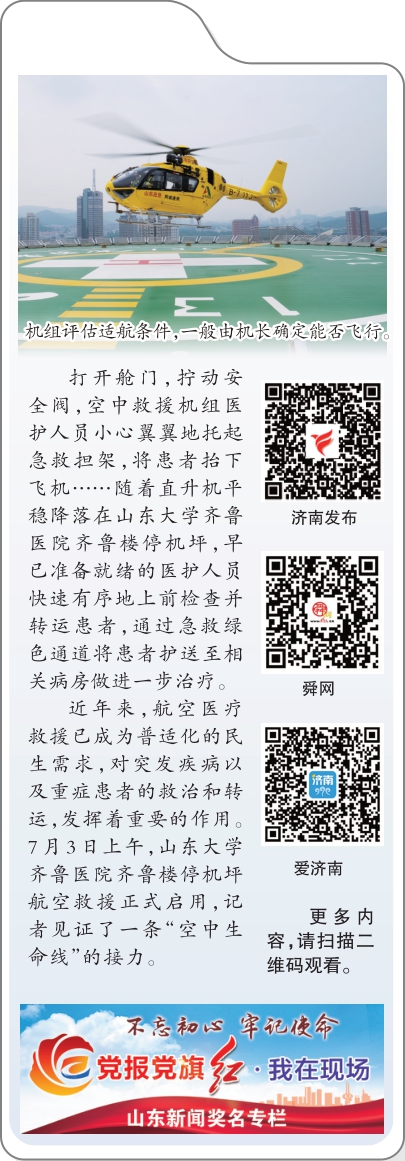 房建果介绍,山东高速华通航空有限公司与山东大学齐鲁医院的深度合作,可以充分发挥直升机安全可靠、灵活高效、突破空间障碍能力强的特点,为全省人民提供更加优质便捷的航空医疗救援保障服务。(本报记者 孙慧娟 于丽娟)