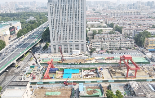 7月3日,济南轨道交通6号线山大南路站(工程名)施工进展顺利,目前该站主体结构已封顶。山大南路站位于二环东路山大南路路口东侧,沿山大南路东西向布设。车站总长168.8米,标准段宽22.3米,扩大端头宽度26.4米,为明挖地下二层车站。据了解,济南轨交6号线目前全线已有32处站点实现进场施工,21座车站实现封顶,21个区间双线贯通,16个站点进入站后施工。 (本报记者 崔健 摄)