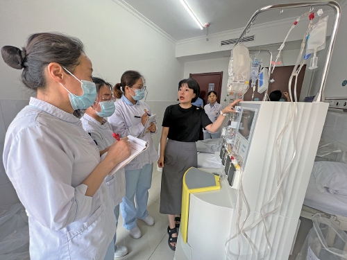 章丘区人民医院血液科工作人员学习血细胞分离单采技术。