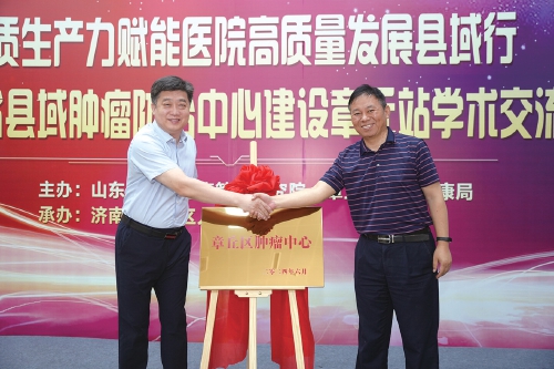 6月19日,在章丘区人民医院东院区启用之际,新质生产力赋能医院高质量发展县域行暨山东省县域肿瘤防治中心建设章丘站学术交流会在东院区举行,北京肿瘤专家章丘工作站揭牌,正式拉开章丘区人民医院与中国顶级医疗机构深入合作的序幕。