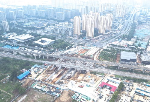 奥体西路是我市重要的南北交通通道,受胶济客运专线、胶济线等多条铁路影响,奥体西路被铁路线分割为南北两段,因此打通奥体西路的需求迫在眉睫。而此次框架桥顶进是下穿胶济铁路立交桥工程的重大节点。按照计划,奥体西路将用“下穿”的方式穿越胶济客专、胶济铁路、黄东联络线三条线路,让南段与此前已经贯通的奥体西路北延跨小清河段实现“牵手”。 (本报记者 崔健 摄)