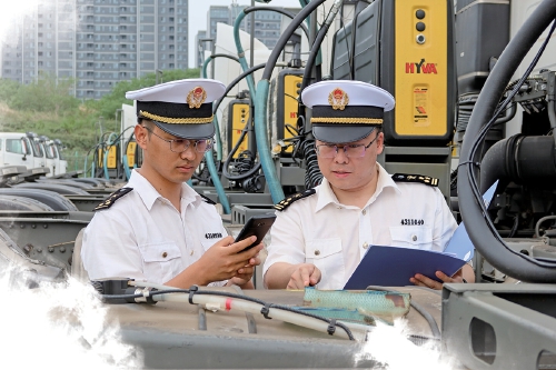 与此同时,泉城海关特殊区域监管二科工作人员白冰和石确正在实地检查着这一批卡车,以“一票多车”模式通过综保区卡口后,这批卡车将发往南非。