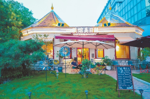 在老商埠的小纬二路16号,有一座近百年历史的德式老建筑,是老商埠唯一一座双塔形的红砖单层建筑,门前悬挂着文物保护单位的招牌。近期,老建筑内外进行重新修缮装饰,打造成复古气息浓郁的咖啡店,门前区域绿化之后成为社区的口袋公园,老建筑独特的造型和郁郁葱葱的绿化带,成为老商埠新网红打卡点。