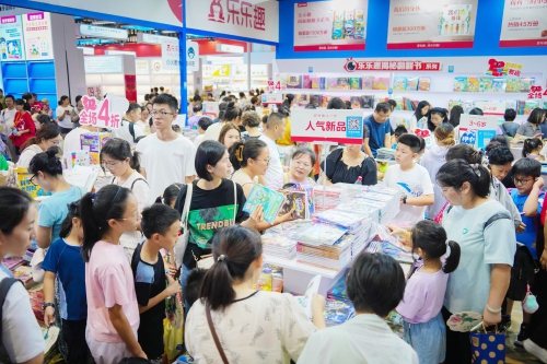 7月29日,在山东国际会展中心,第三十二届全国图书交易博览会迎来收官日。当日上午,展馆内依旧人潮涌动,各展位纷纷推出更大力度的促销活动,吸引了众多读者前来选购心仪图书。(黄中明 摄)