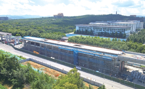 据了解,济南轨交8号线一期工程连接齐鲁科创大走廊、章丘大学城、明水经济技术开发区,全长25.5公里,其中高架段长20.3公里。目前,8号线一期工程地下段3座车站已全部封顶;高架段,U型梁架设、铺轨、四电工程施工及车辆段综合楼、运用库等主体工程建设有序推进。 (本报记者 崔健 摄)