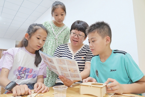 记者在托管班看到,社区几十名小学生在明亮、凉爽的教室里埋头写着作业;休息的间隙里,“共享妈妈”冯琴与孩子们一起研究起益智积木,温馨欢乐的画面格外动人。