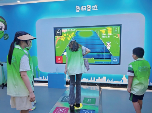 此外,基地还设有全息投影动画,能够清楚地看到垃圾的“前世今生”。“绿色之旅”展示了垃圾每个环节的具体场景。分类知识电子书,翻书即可观看垃圾的科普知识。微信扫码与抠图打卡设备,让人人都参与,人人都分类。“分类灌篮”“各归各位”“垃圾分类大作战”等体感互动游戏板块,寓教于乐、寓学于趣,让参观者能够轻松愉悦地学会生活垃圾该如何分类。基地通过多媒体投影、数字影片演示、图文说明、游戏互动等方式,给人一种身临其境的沉浸式体验,潜移默化地激发大家的垃圾分类环保意识,让参观者自觉践行垃圾分类,共享品质城市之美。