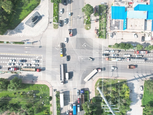 据悉,308国道梓东大道路口位于天桥区西北部,是常见的干线公路与城市道路的衔接路口,承担城市对外交通和过境交通的重要功能。该路口周边路网少、路段流量大、通行货车多,特别是东西方向车辆排队较长,存在明显的“进城难、出城难、过境难”问题。在此背景下,为解决该路口交通拥堵问题,保证济南内外交通顺畅衔接,提升市民出行体验,天桥交警大队决定推出车道瘦身增加车道、优化路段交通流线、路口增设减速标线以及调整信号放行模式4项举措,提高该路口东西方向的通行能力,缓解交通拥堵压力。