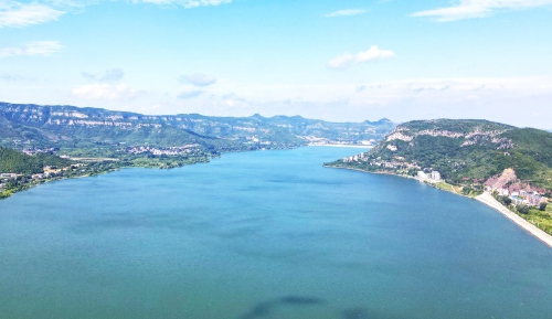 近日,济南卧虎山水库在蓝天白云的映衬下景色宜人,展现出一幅灵动的山水画卷。在近期连续降雨的作用下,目前卧虎山水库蓄水量持续增加,当日蓄水量为4947.10万立方米,水位达到127.11米,较7月1日增加了1600余万立方米,对于确保市区居民用水和保泉护泉都将起到积极作用。 (本报记者 崔健 摄)