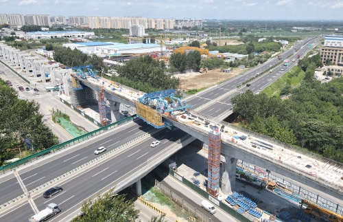 近日,在轨交8号线一期建设现场,高架段箱梁上跨大东环(绕城高速公路二环线东环段)施工顺利推进,目前东西两段箱梁即将合龙。据了解,轨交8号线一期工程连接齐鲁科创大走廊、章丘大学城、明水经济技术开发区,全长25.5公里,其中高架段长20.3公里。目前,8号线一期工程地下段3座车站、高架段潘王路站及终点站清源大街站已全部封顶;高架段,U型梁架设、铺轨、“四电”工程施工及车辆段综合楼、运用库等主体工程建设有序推进。 (本报记者 崔健 摄)