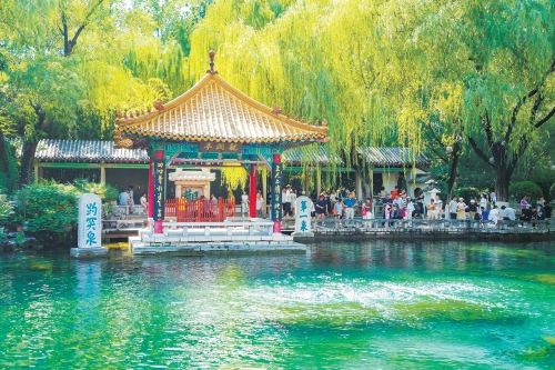 8月6日,趵突泉公园内游人如织,众多市民游客在暑期来到这里,赏清澈透亮的泉水,听流水潺潺的声音,用镜头记录下“天下第一泉”之美。根据济南市城乡水务局官网发布的数据,8月6日,趵突泉和黑虎泉地下水位分别为28.27米和28.22米,分别较前一天抬升了7厘米、9厘米。 (黄中明 摄)