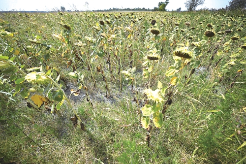这是近日在匈牙利东南部的一座村庄拍摄的受干旱影响的向日葵田。(新华/法新)