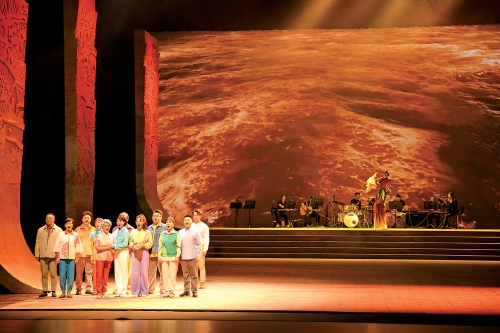 8月22日至24日晚,由济南市歌舞剧院创作排演,山东省音乐家协会合作推出的国家艺术基金2024年度大型舞台剧资助项目——音乐剧《我家门前有条河》在山东省会大剧院连演3场。该剧是一部响应黄河重大国家战略,反映乡村振兴主题的现实题材大型舞台艺术作品,以轻喜剧的形式讲述了黄河滩区人民拼搏奋斗的时代精神。