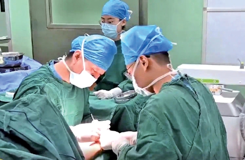 12:50入院,14:00进入手术室,手足外科、口腔外科等多组人员同时抢救,完成创面清创止血、双下肢多发骨折解剖复位固定,修复损伤的血管、神经、肌腱,撕脱皮肤无张力缝合,利用右上肢废弃皮反取皮回植……20:40,经过6个多小时的紧张手术,患者原本苍白的右下肢恢复红润,血运良好,第一期以“抢救生命+保肢”为目标的手术顺利完成。